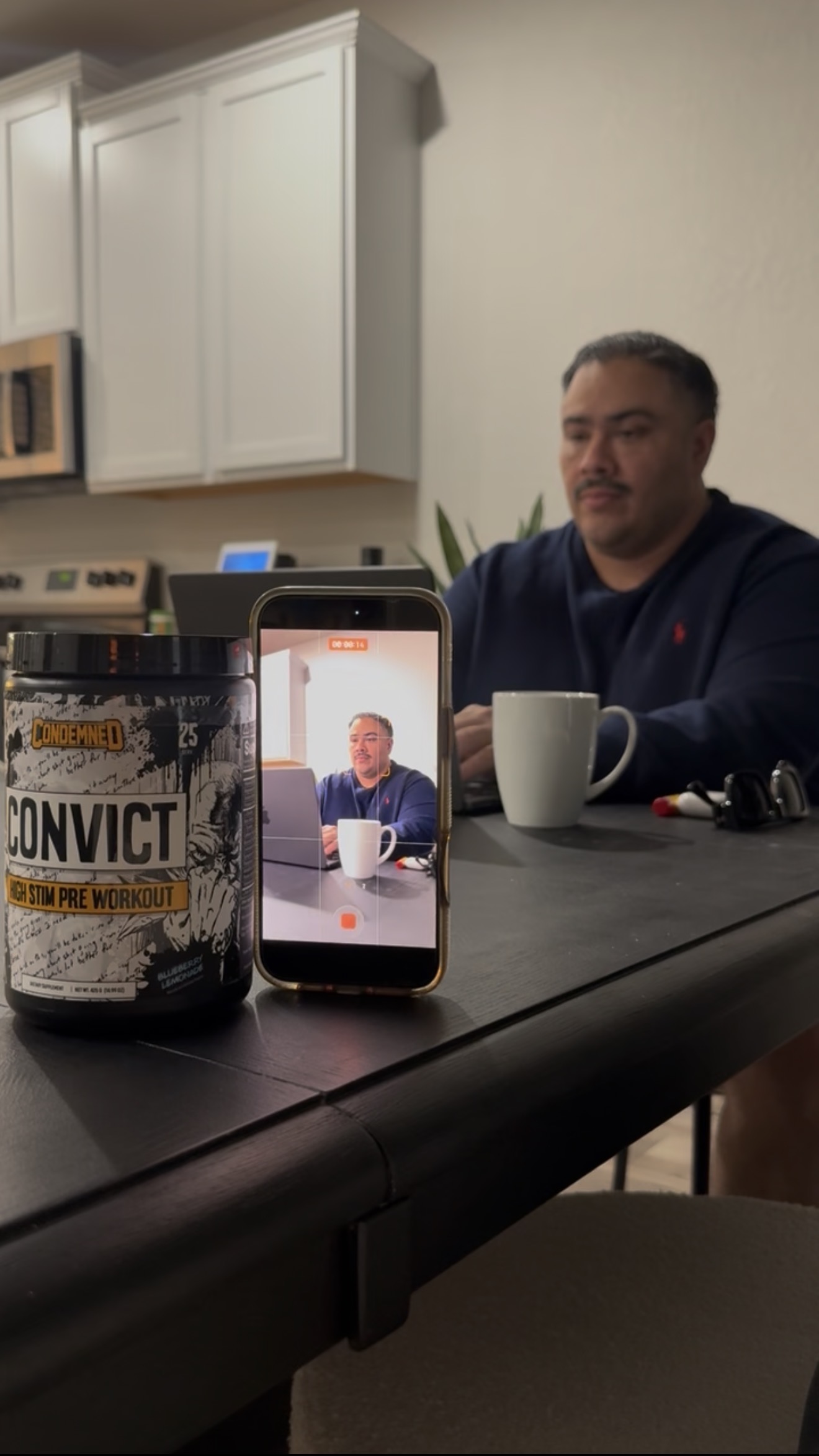In my case, I literally used a pre-workout jar to hold my phone while I recorded. I did use the CINEMATIC feature on my phone to record for higher quality.
