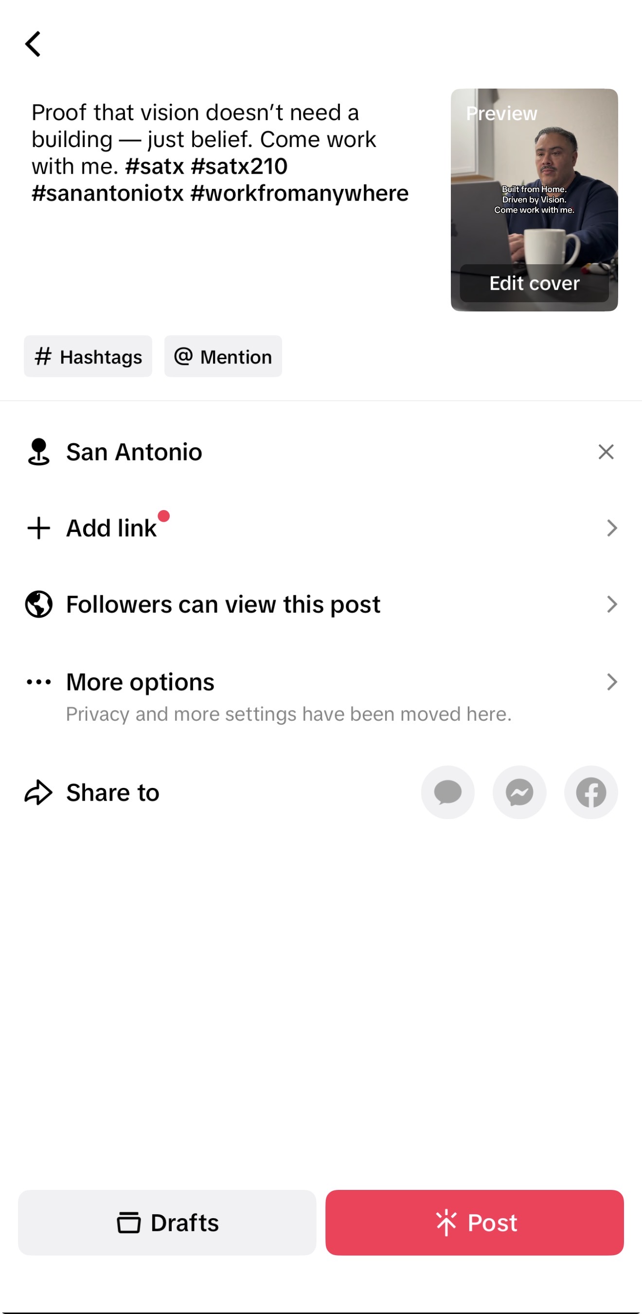 Finally, before posting, I made sure my LOCATION was San Antonio, and I used the local HASHTAGS, and BOOM! I posted!