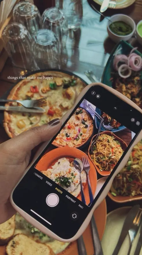 1. What you're eating whether it be breakfast, lunch, or dinner, or what you're drinking like coffee or tea.